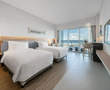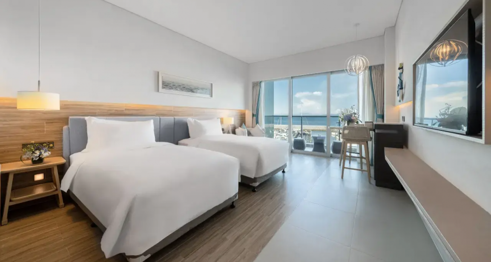 深圳浪骑瞻云度假酒店,于2020年8月1日盛大开业,占地面积54,000㎡ ,酒店屹立于有“深圳后花园”美誉的深圳大鹏半岛,大鹏新区杨梅坑蔚蓝海岸,距离深圳站 59.1km,深圳宝安国际机场95.5km。酒店共有286间全海景主题客房,并配套云尚餐厅、私宴包厢、大宴会厅、海景多功能会议室、浪骑水上运动中心等多元化区域, 更有海岸线活力中心,KTV、棋牌室、户外无边泳池,网红防波堤等丰富的康乐设施与亲子游玩设施,旨在打造集高端接待、会务团建、休闲度假和航海体验为一体的 综合性度假酒店。