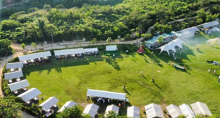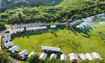 营地巧妙地将优越的自然环境与现代休闲设施相融合,休闲娱乐区(放松发呆,自由自在),透明玻璃房(空调房里看山景,冬暖夏凉), 户外活动区(越野车、CS、皮划艇等,放肆去野),大棚拓展区(不惧风雨,团建照玩),绿茵草坪区(各种团建玩法,支持专属定制),拍照打卡区(朋友圈的点赞收割机),会议培训等。无需驱车辗转,吃喝玩乐一站式解锁。