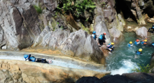 13:30-15:30挑战极限【玄真溪降畅玩线(家庭友好线)】全程约2小时被称为“峡谷人体漂流”位于玄真漂流赛道上游的玄真大峡谷中,比漂流多 1℃的肾上腺素,沿途可穿越清澈的玻璃水,还能体验网红跳水台、峡谷水滑道、水上魔毯、峡谷蹦床等嬉水项目,快乐不断。1.5小时左右的自然峡谷与清澈玻璃水的亲密接触,是亲子和家庭游峡谷嬉水的首选野趣之地,完美诠释了合家欢的欢乐氛围。温馨提示:景区规定溪降必须穿专用溪降鞋,游客可自带或者景区现场购买团队17元/双。