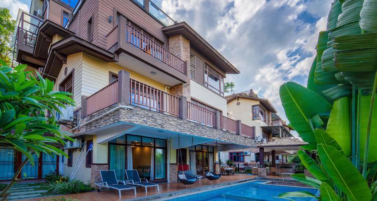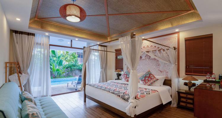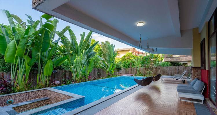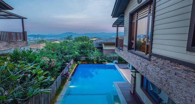 1801号房位于别墅1楼 2张1.2米床望泳池超无敌风景+独立洗手间。