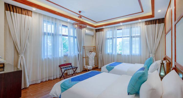 1407号大房位于別墅2楼 2张1.5米泰式架子床+独立洗手间