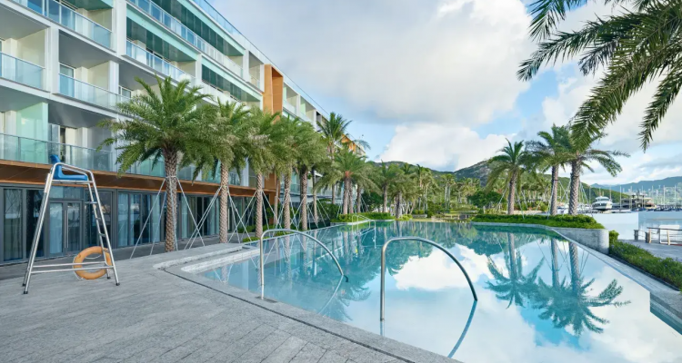 深圳浪骑瞻云度假酒店,于2020年8月1日盛大开业,占地面积54,000㎡ ,酒店屹立于有“深圳后花园”美誉的深圳大鹏半岛,大鹏新区杨梅坑蔚蓝海岸,距离深圳站 59.1km,深圳宝安国际机场95.5km。酒店共有286间全海景主题客房,并配套云尚餐厅、私宴包厢、大宴会厅、海景多功能会议室、浪骑水上运动中心等多元化区域, 更有海岸线活力中心,KTV、棋牌室、户外无边泳池,网红防波堤等丰富的康乐设施与亲子游玩设施,旨在打造集高端接待、会务团建、休闲度假和航海体验为一体的 综合性度假酒店。